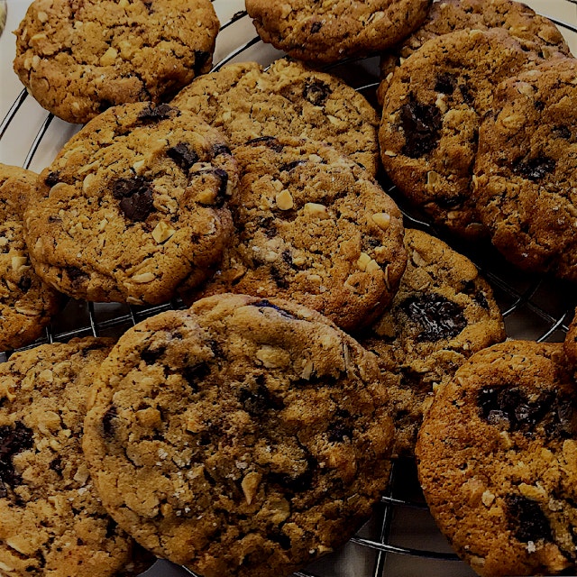 Jim says I make fancy food all the time. I didn't think so. All he wants is cookies. Peanut Butter Chocolate Chunk Oatmeal cookies.